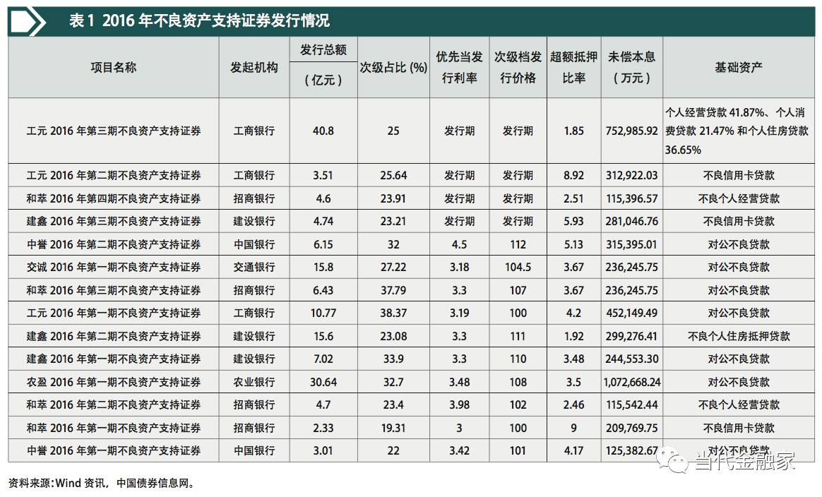 2012年5月,我国证券化业务重启。2016年3月,《不良贷款资产支持证券信息披露指引(征求意见稿)》发布,该指引明确了不良贷款证券化产品的发行、存续期、信息披露及评价与反馈等方面的机制。2016年5月,随着中国银行发行“中誉2016年第一期不良资产支持证券”,招商银行发行“和萃2016年第一期不良资产支持证券”,标志着不良资产证券化(以下简称“不良ABS”)在暂停8年后正式重启。
